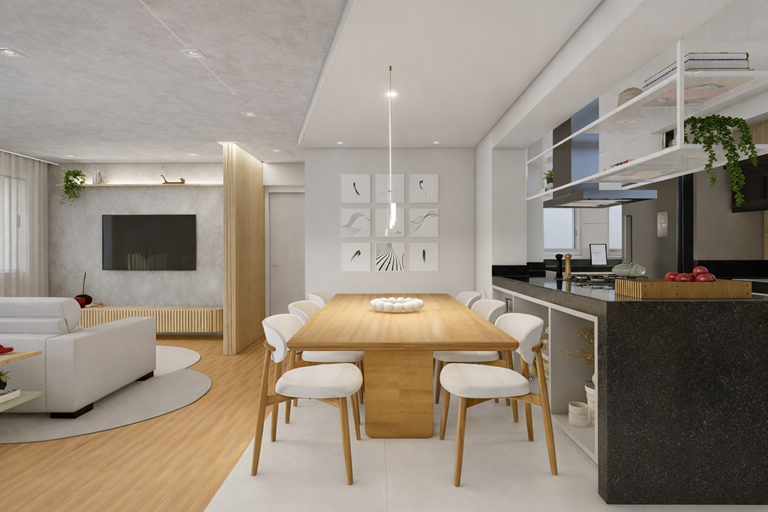 Um apartamento onde intervenções sutis redefinem a fluidez do espaço e reforçam uma estética minimalista e contemporânea.