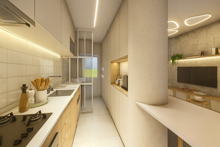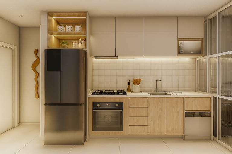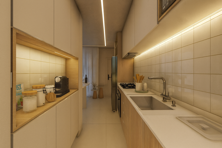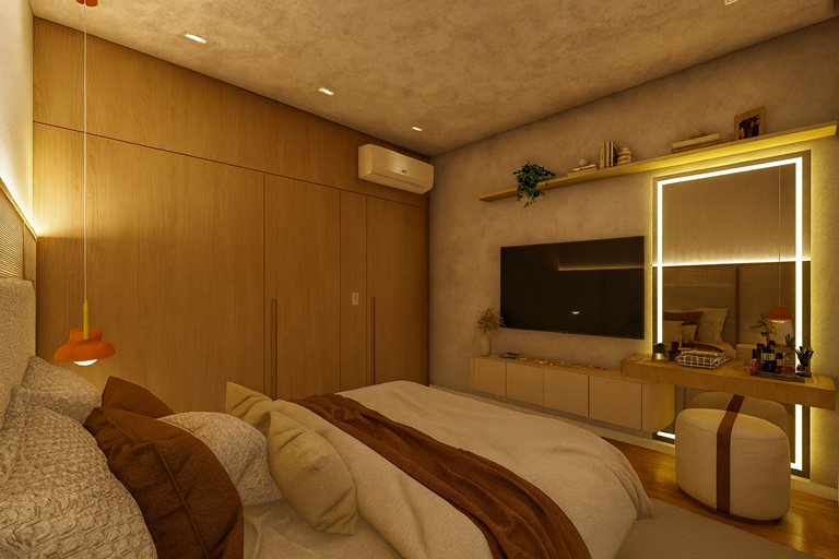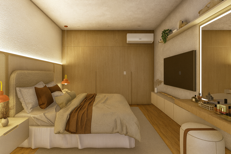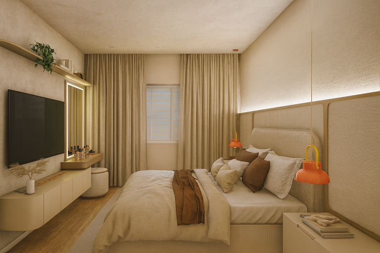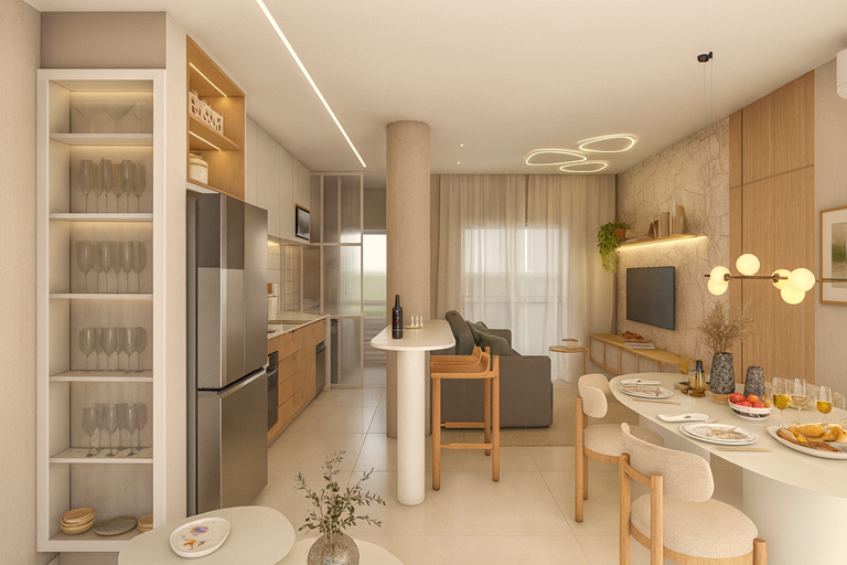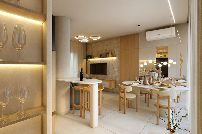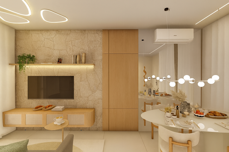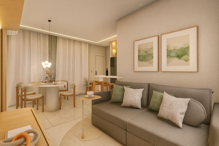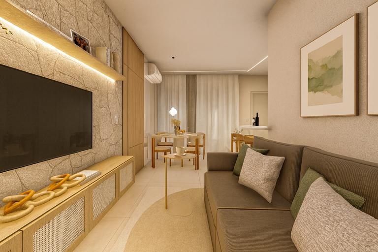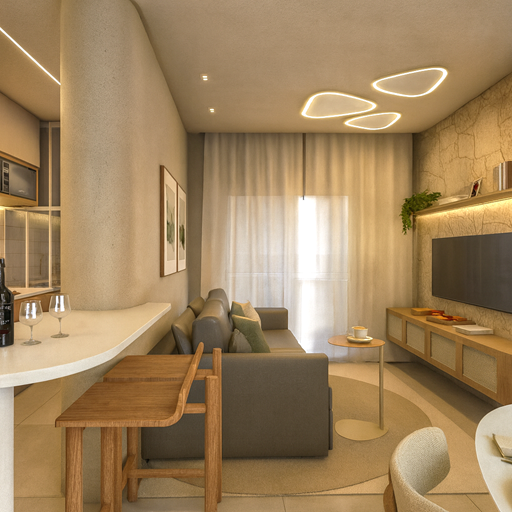 Este projeto de interiores para uma residência de 64 m² parte da busca por um espaço contemporâneo, acolhedor e funcional, onde cada elemento contribui para ampliar a percepção de conforto e integração entre os ambientes. A linguagem adotada privilegia formas orgânicas, tons neutros e uma iluminação quente, criando uma atmosfera suave e convidativa.